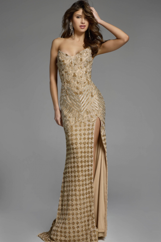 JOVANI ジョヴァニ 大人気 装飾 ストラップレス コンテストドレス ベージュ アメリカ直輸入 正規品