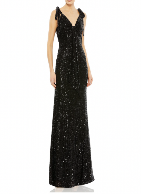 華やかさと可愛らしさを兼ね備えたシークインレースが魅力のロングドレス。