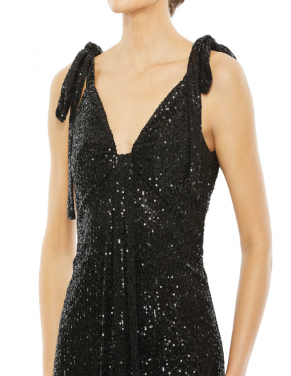 光を受けるたびに上品な光沢を放つスパンコールが全体に散りばめられ、ラグジュアリーな存在感を演出します。