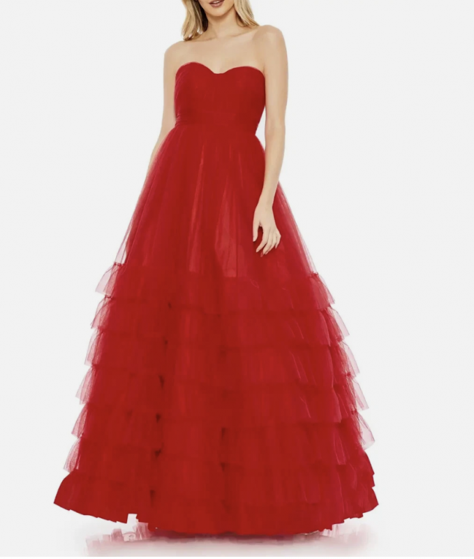 MAC DUGGAL マックドゥガル チュールスカートボリューム ロングドレス レッド アメリカ 直輸入 正規品