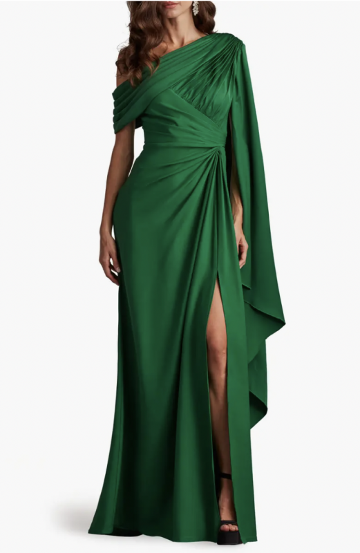 TADASHISHOJI タダシショージ ワンショルダー ドレープケープ ロングドレスドレス グリーン 直輸入 アメリカ 正規品