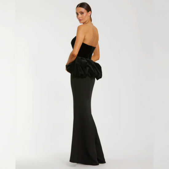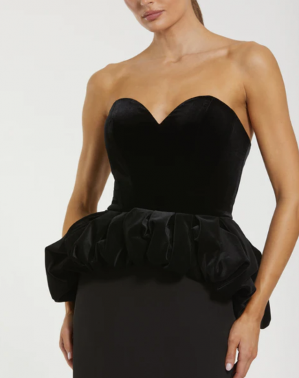 秋冬にぴったりの、上品なベルベットペプラムドレス。
